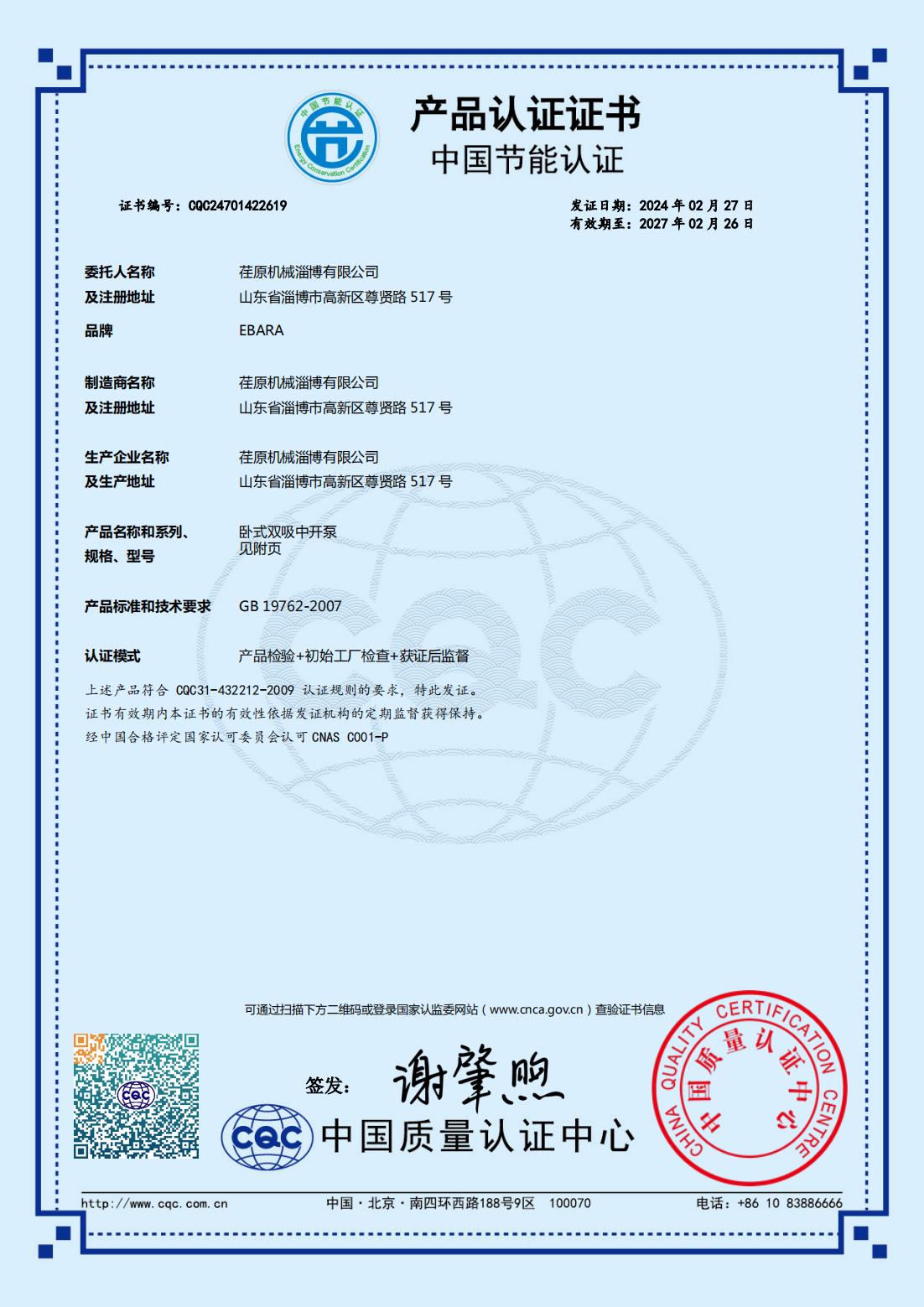• 中國節(jié)能產(chǎn)品認證證書