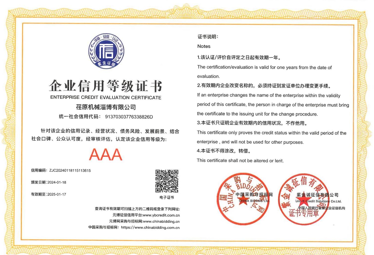 • AAA企業(yè)信用等級證書