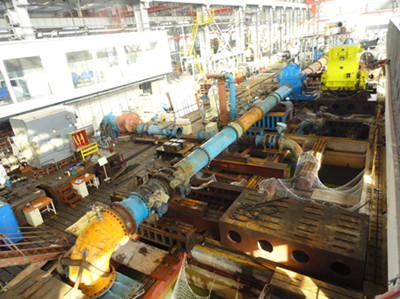 1000cm×900cm的大型臥式雙吸離心泵測試現(xiàn)場