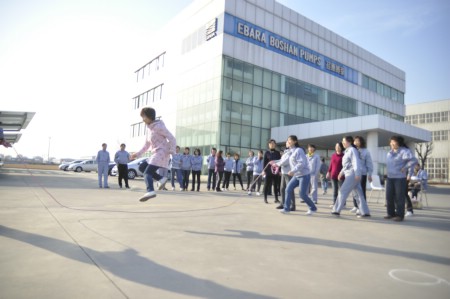 在踢毽子比賽現(xiàn)場,只見毽子上下翻飛,隊員們不急不慢,沉著應對。在跳繩比賽現(xiàn)場,繩子在隊員手中有節(jié)奏的搖著,每個人和著自己的節(jié)奏,有的跳的輕快、有的越著急越絆腳,周圍看的員工也跟著著急。最吸引人的還是集體項目“跳長繩”,每個隊8名隊員,2人搖繩,其余6名隊員魚貫從跳繩中穿過,然后再從另一邊跳入,隊員們配合默契、身輕如燕 ,觀眾們加油聲此起彼伏,整個現(xiàn)場一片歡樂。最終,獲得踢毽子比賽前三名分別是:牛艷春、鹿子云、焦金玲。獲得跳繩比賽前三名分別是:張洪蘭、王陽、王春;跳長繩比賽的第一名是生產分會。