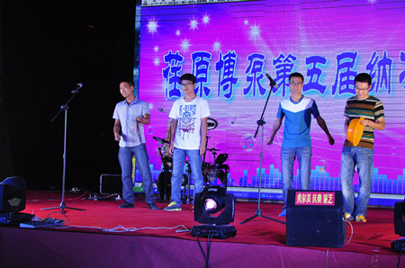 18:00,文藝演出正式開(kāi)始,首先是搖滾樂(lè)隊(duì)帶來(lái)的勁爆歌曲,將晚會(huì)現(xiàn)場(chǎng)帶入了熱烈的氛圍。晚會(huì)上,有抒情懷舊的經(jīng)典老歌,有驚艷柔美的女工舞蹈,有激情四射的魅力街舞,還有新員工自編自演的三句半,更有抒發(fā)對(duì)公司深厚情感的詩(shī)朗誦《騰飛吧,荏原博泵》。有公司領(lǐng)導(dǎo)的獻(xiàn)唱,有普通員工的表演。每一個(gè)節(jié)目,都凝聚了員工的心聲,每一個(gè)節(jié)目都飽含了員工的熱情。在晚會(huì)上,公司常務(wù)副總經(jīng)理王正軍先生深情地說(shuō);今天是個(gè)歡樂(lè)的日子,荏原博泵歷經(jīng)八年的發(fā)展,從現(xiàn)在開(kāi)始已經(jīng)步入了健康發(fā)展的軌道。今年公司訂單已達(dá)五個(gè)億,下一步就是生產(chǎn)、制造、交貨要交給在座各位,希望大家就像一臺(tái)機(jī)器的每個(gè)部件一樣,齊心協(xié)力配合好,公司的經(jīng)營(yíng)成果會(huì)與大家共享!王總也一改往日的豪情,演繹了一首《風(fēng)往北吹》,表現(xiàn)了一個(gè)鐵血男兒柔情的一面。